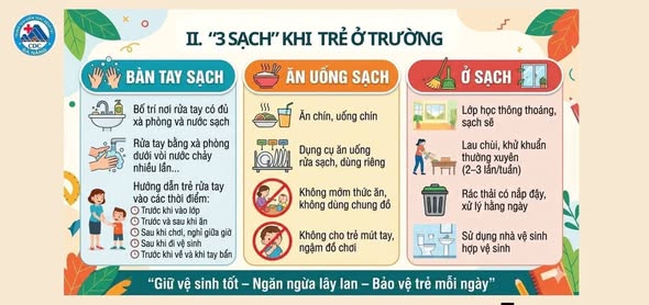 Thông tin kịp thời: Khi thấy trẻ có biểu hiện sốt, loét miệng, hoặc nổi mụn nước ở lòng bàn tay, bàn chân… phụ huynh vui lòng cho con nghỉ học để theo dõi và đưa đến cơ sở y tế gần nhất.